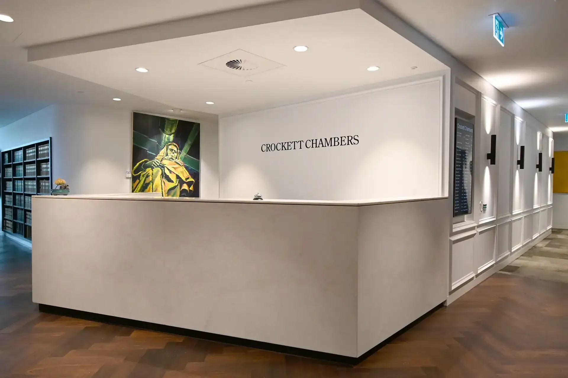 At the turn of the millennium, five prominent barristers—Robert Richter, Con Heliotis, Philip Dunn, Remy van de Wiel, and Terry Forrest—shared chambers and a deep respect for Justice Crockett. They unanimously agreed to name their shared chambers ‘Crockett Chambers’ in his honour. Within four years, all original members had taken silk.